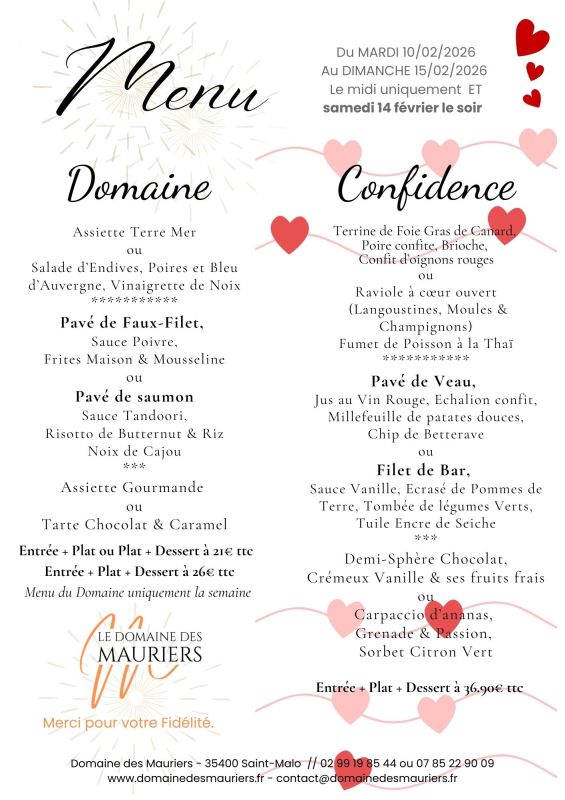 Nous avons célébré nos noces d'Or le 06.10.2018, lieu tres agréable, personnel au top, repas délicieux. Tres bonne soirée. Bravo les Mauriers à St Malo
