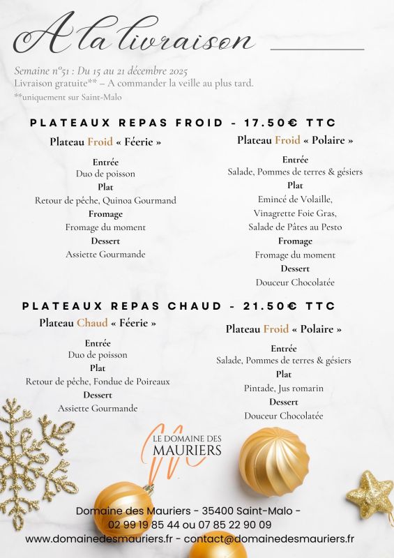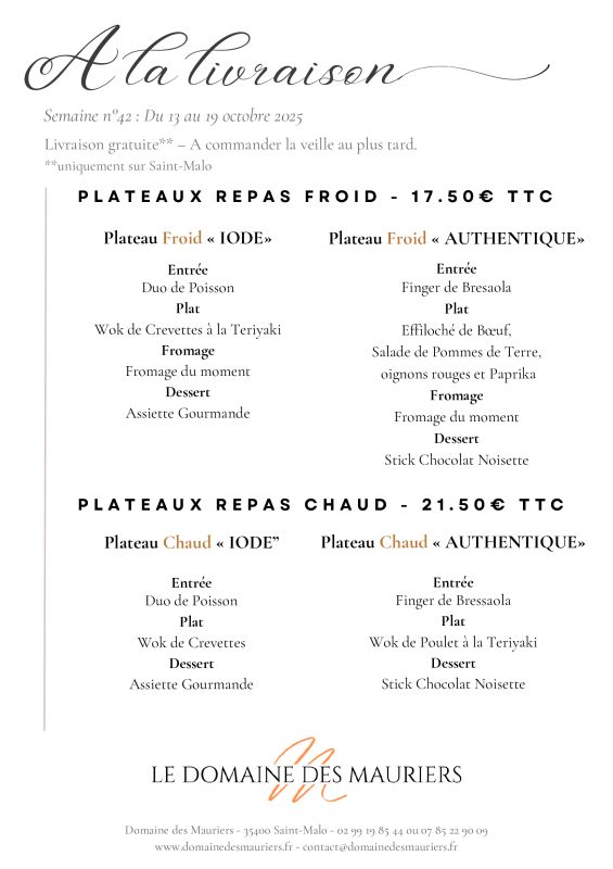 Un grand merci à l'équipe du Domaine des Mauriers pour l'organisation de notre repas de mariage, sous forme de cocktail dinatoire en Juin 2023. Nous sommes enchantés par votre prestation. Merci encore pour votre professionnalisme, votre aimabilité et la qualité des mets servis.