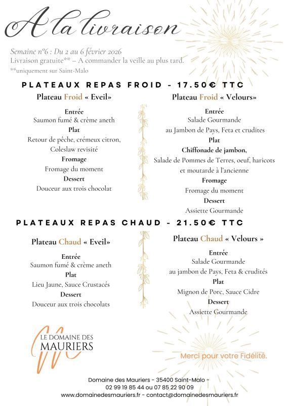 Un grand merci à l'équipe du Domaine des Mauriers pour l'organisation de notre repas de mariage, sous forme de cocktail dinatoire en Juin 2023. Nous sommes enchantés par votre prestation. Merci encore pour votre professionnalisme, votre aimabilité et la qualité des mets servis.