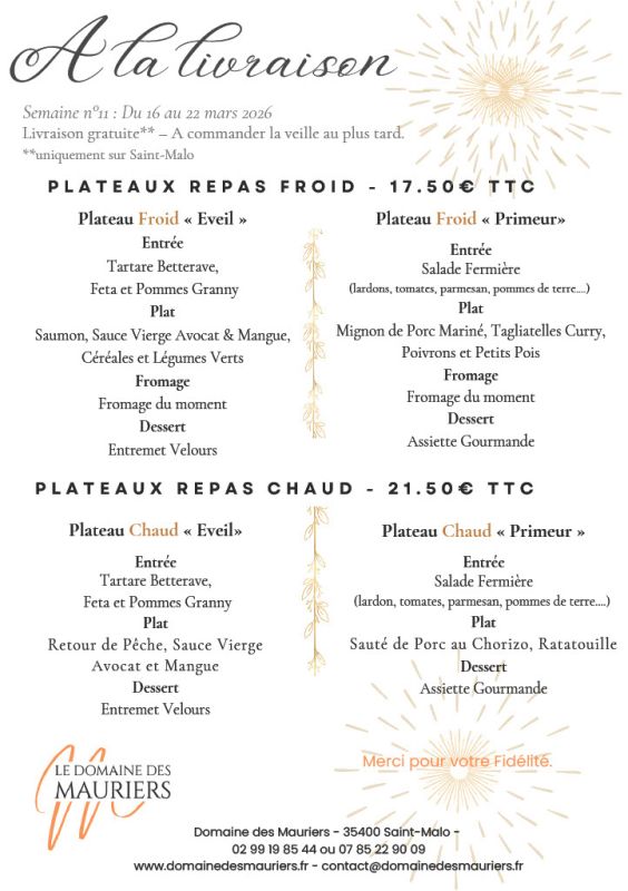 Réservez vos plateaux repas par mail à domainedesmauriers@gmail.com